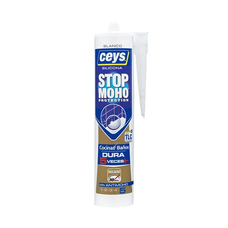 Juntas limpias y blnacas durante más tiempo. Silicona superior para baños y cocinas, única gracias a la combinación de 2 exclusivas propiedades: Tecnologic TLC, evita que el moho y la suciedad se deposite sobre la silicona, con lo que no ennegrece y permanece limpia y sin moho 5 veces más tiempo que una silicona normal cocinas y baños. Nivel antimoho extra fuerte nivel 5 Seca en sólo 30 minutos con lo que permite ducharte rápidamente sin esperar 24h 280ml blanca