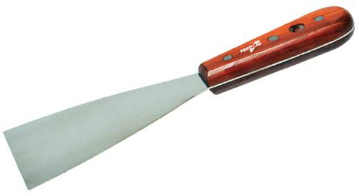 Es una espátula de fabricación artesanal de máxima calidad: presenta una hoja completa de acero inoxidable europeo de 1,2 mm a 0,6 mm, rectificada para mayor flexibilidad y pulido espejo de la hoja. Cuenta con un mango de madera tropical y triple remache para mayor fijación.