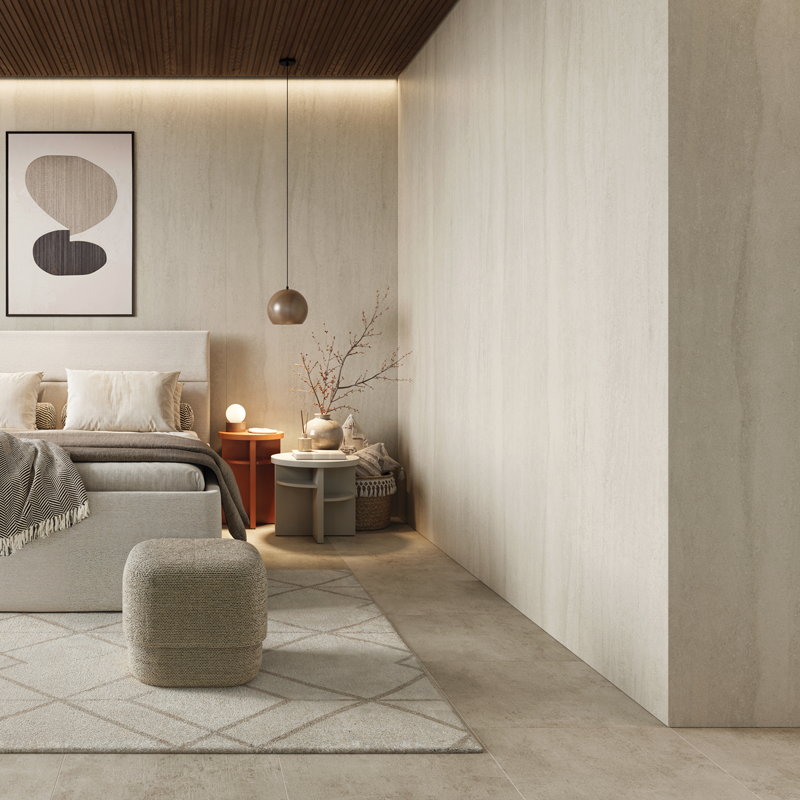 Disponibles en formato grande de 280x110 cm, se instalan verticalmente, con juntas solo en el lado largo, logrando un acabado limpio y minimalista.
