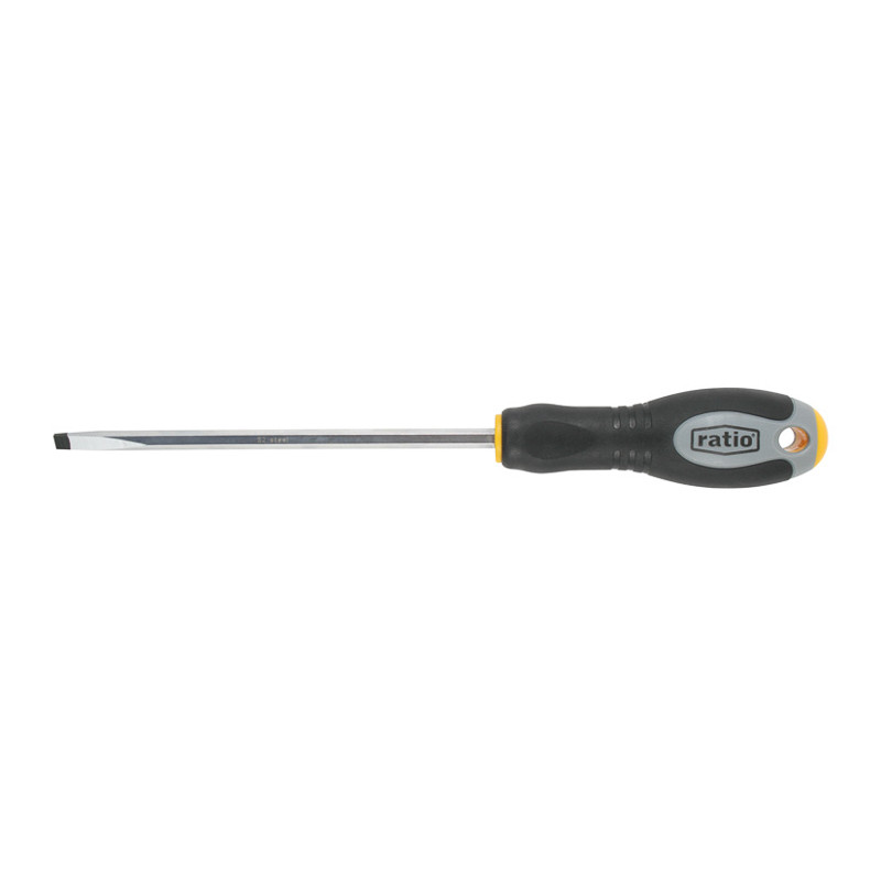 Este destormillador de punta Plana, tiene un diseño ergonómico que se adapta muy bien a cada usuario. Dispone de un mango trimaterial antideslizante que asegura el agarre y permite trabajar con mayor seguridad