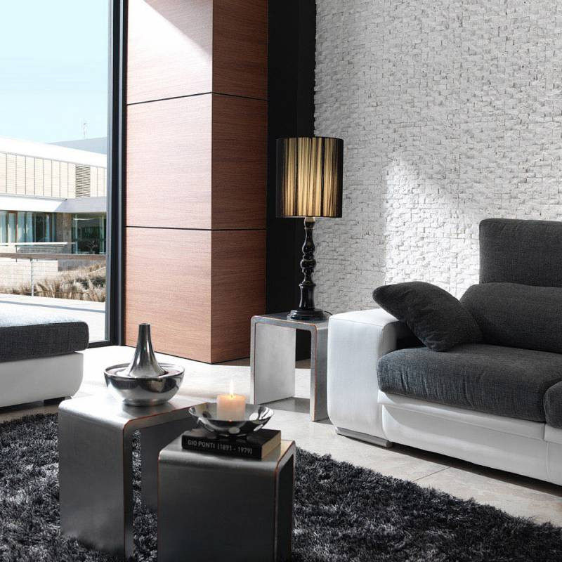 Panel Concept, es un panel de imitacion pequeñas piedras enlazadas antre ellas, formando un estilo moderno y sencillo. facil de instalar mediante encolado y atornillado. medida de placa 1.21x0.89m. tres colores a escoger: ref 450 Ocre, ref 451 Blanco Italia y ref 452 Antracita.