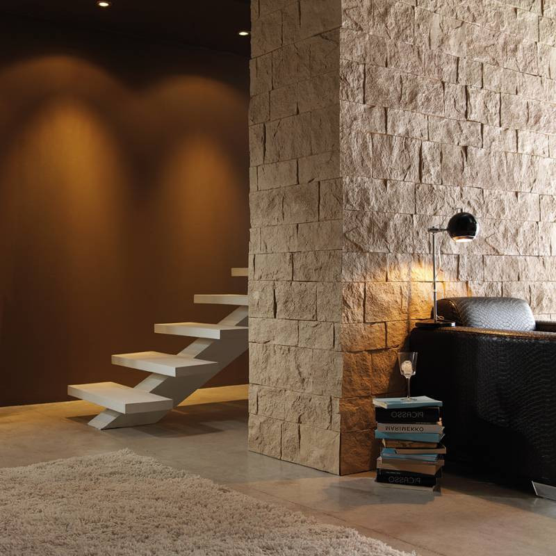 Panel Sillarejos, es un panel decorativo en dos opcines de color, blanco y arena. está diseñado con diferentes tamaños de losetas, dando un ambiente elegante a cualquier ambiente. su formato es de 0.97x0.94m, en forma de puzle para su facil instalación. La instalacion es encolado y atornillado. Tambien se pueden encontrar piezas esquineras.